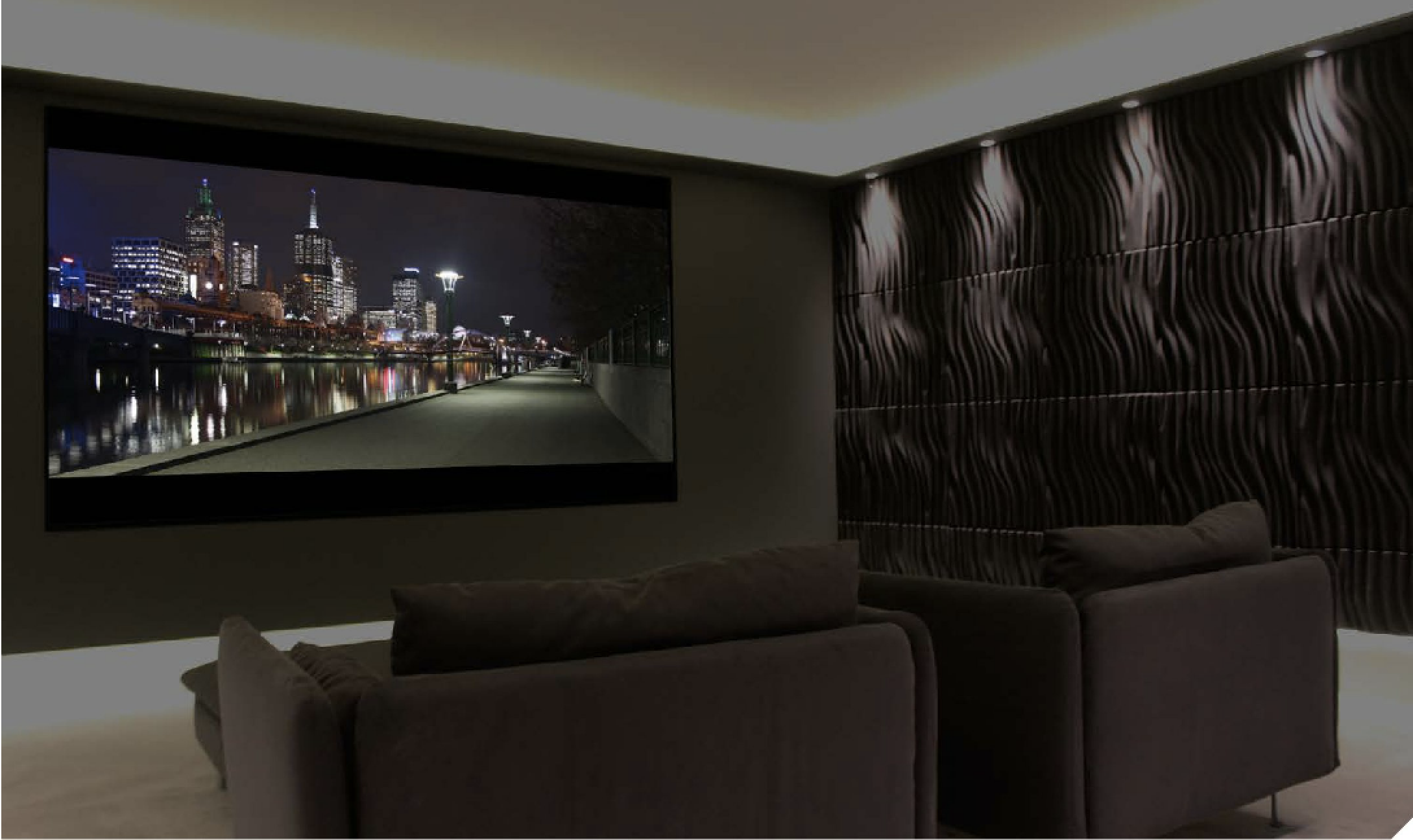The luxury feel of the plush velvet frame finish that absorb 99.7 of any light and the silent movement of the masks reveal a premium grade craftsmanship. This combined with the various programmable aspect ratios give you the ultimate viewing experience.