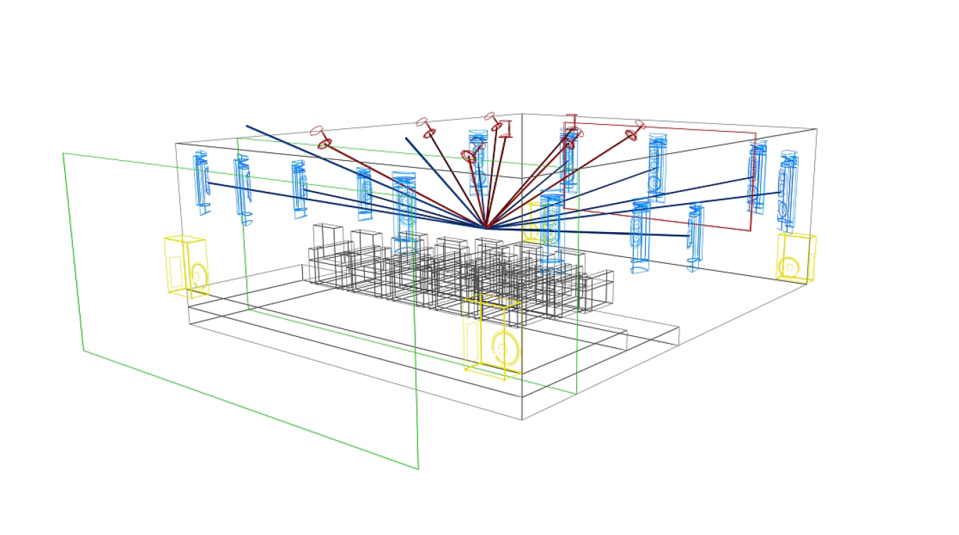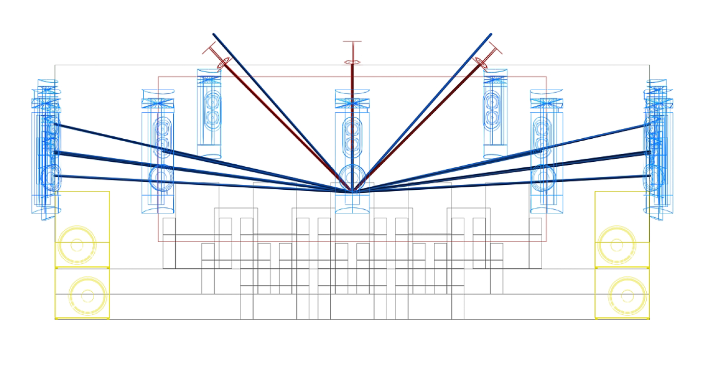 The Vertex 2 are located behind an A.T. projection screen, a Screen Excellence Discovery of 100 inches base width.