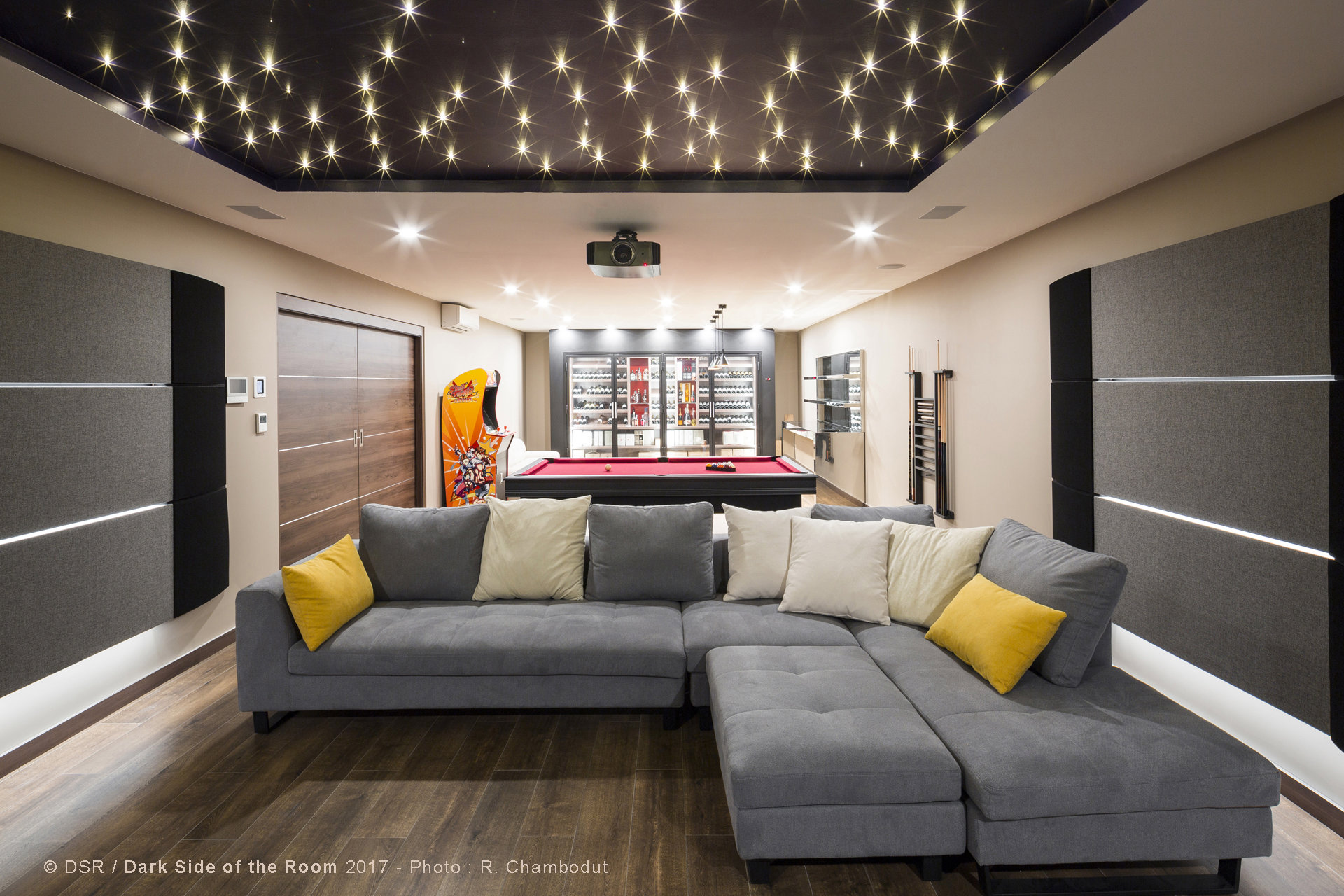 The installation took place in a 28 square metre room and needed to work within a modest budget. The Installer, Dynamic Home Cinema from Marseille, hired Jean Pierre Laffont, a famous French acoustic designer to create the optimum acoustic environment without reducing too much of the available space. After the acoustic furbishing, the remaining space was 25 square metres.