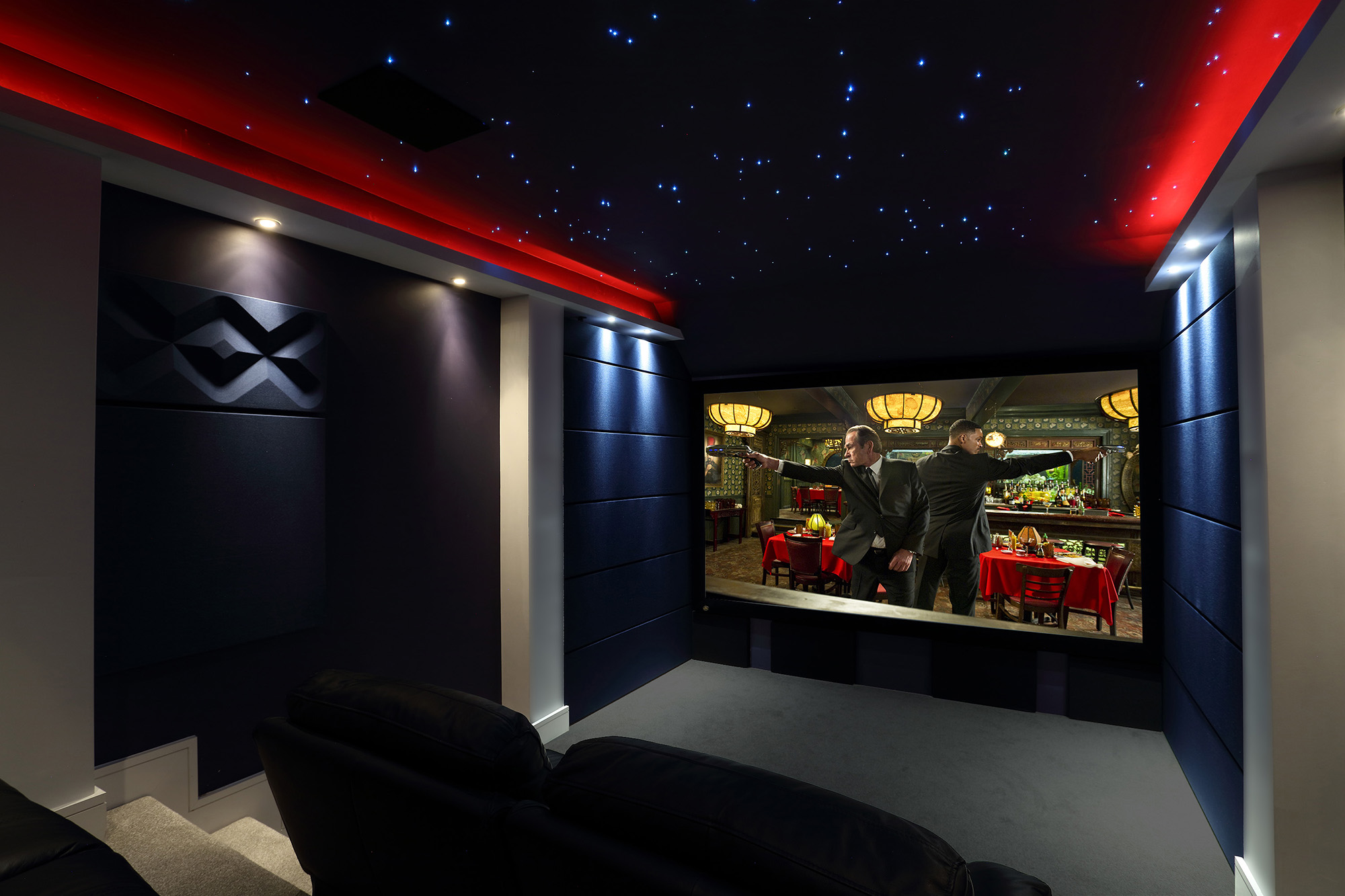 The cinema room will be used for a large variety of programmes like movies, cartoons and sport; but mainly for concert videos as the client is a great music lover.