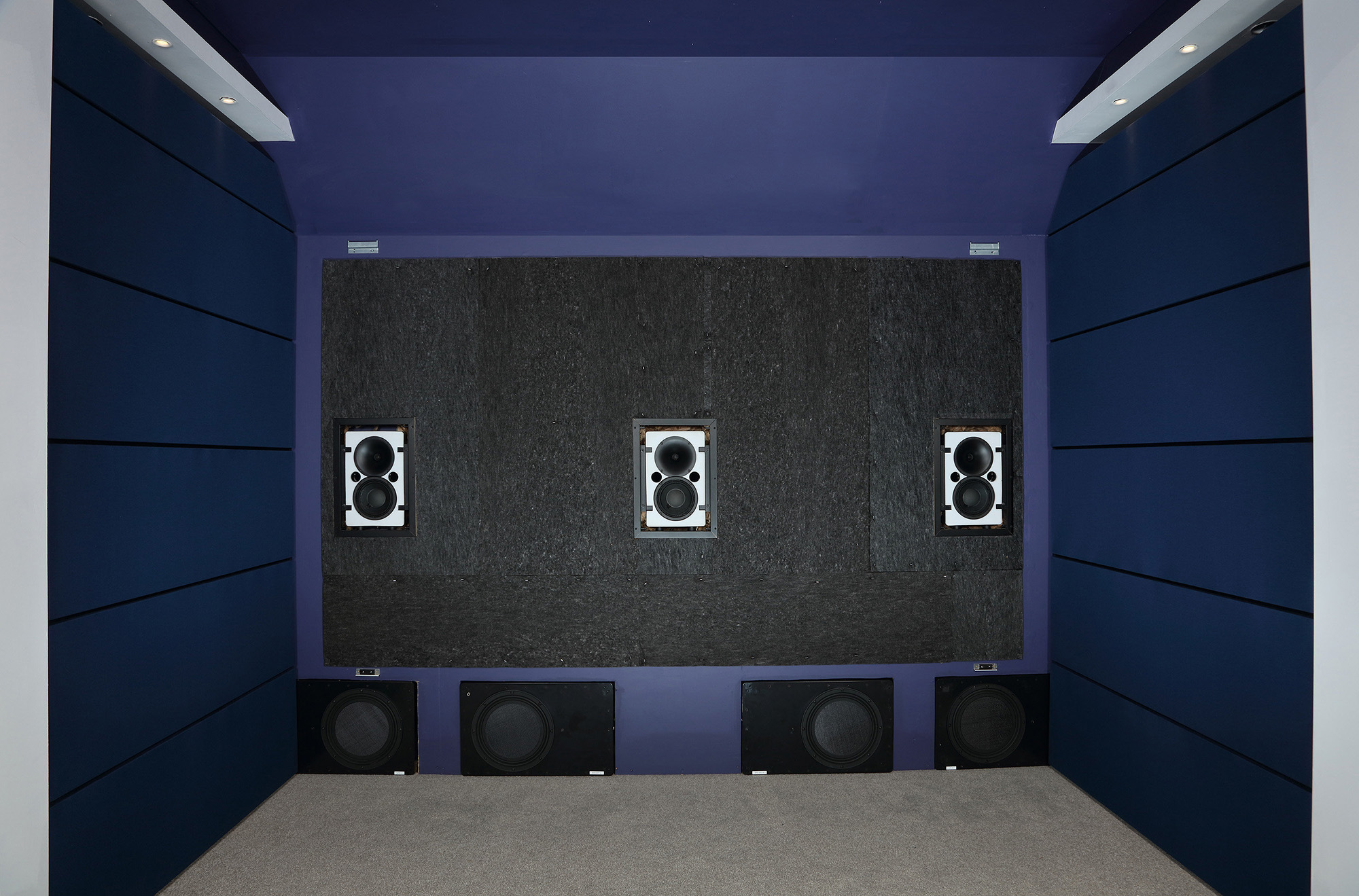 The main technical challenge encountered in this installation was that the front wall was framed to suit the old speakers - this immediately excluded the option of using the very desirable and powerful Vertex 3 loudspeaker as centre speakers. Luckily, when space is at a premium, employing Vertex 2 loudspeakers as LCR speakers more than does the job when it comes to delivering an amazing SPL (105dB at 3m!) for this size of room (3.6m wide by 5.7m long).