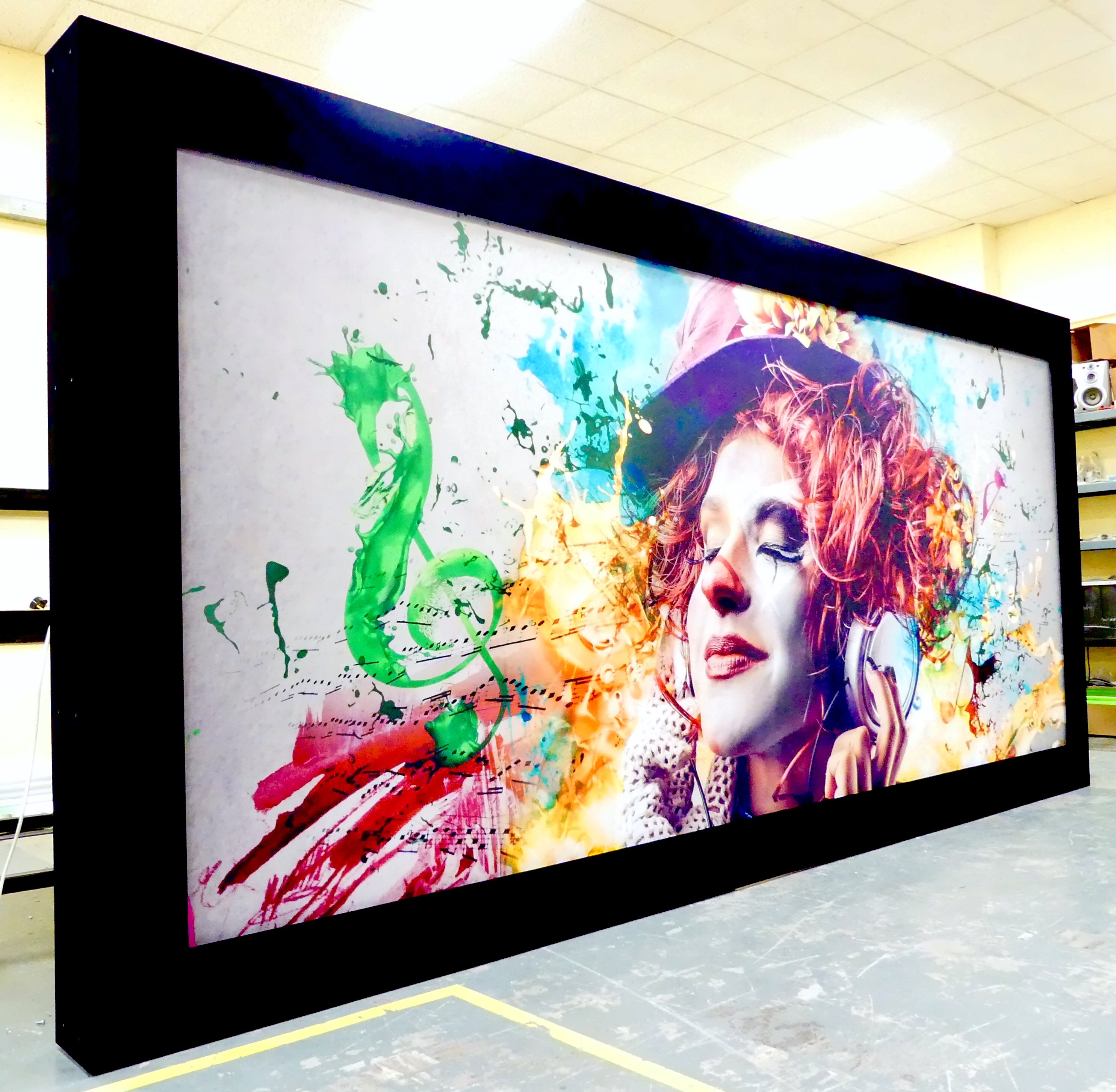 When deployed, the TAM Art Edition printed mask covers the entire surface of the film screen. Only the artwork is visible within the surrounding frame - much like a decorative picture on the wall.
